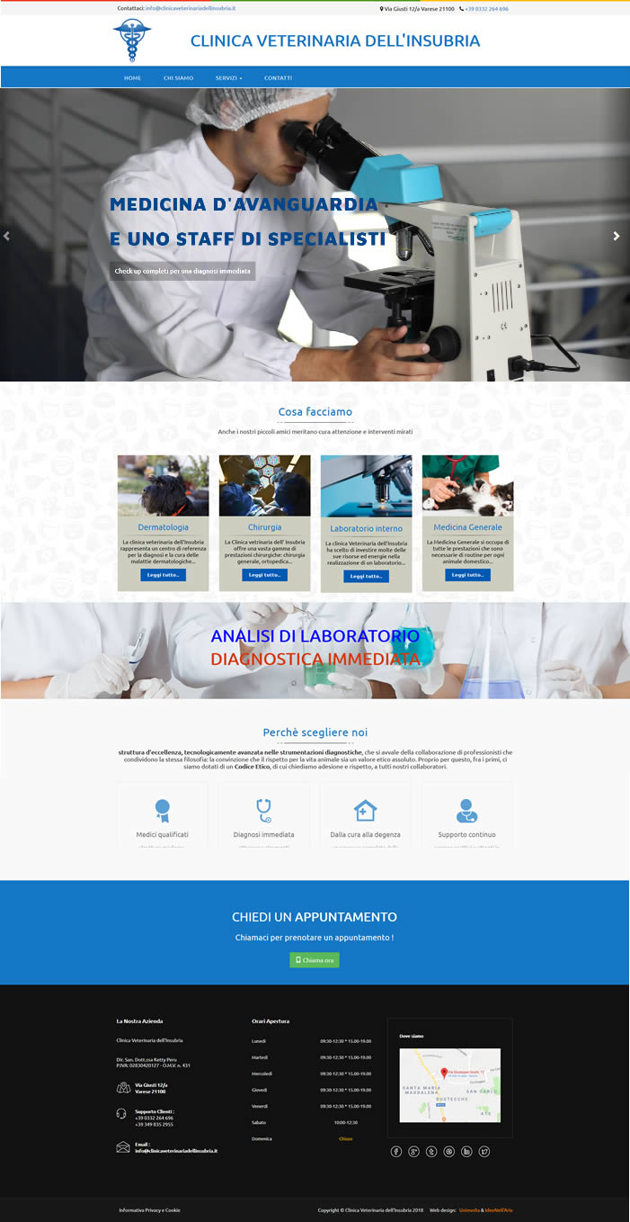 Clinica Veterinaria Responsive design, Tecnologie: Unimedia Framework, PHP, jQuery, JS, CSS3, HTML5