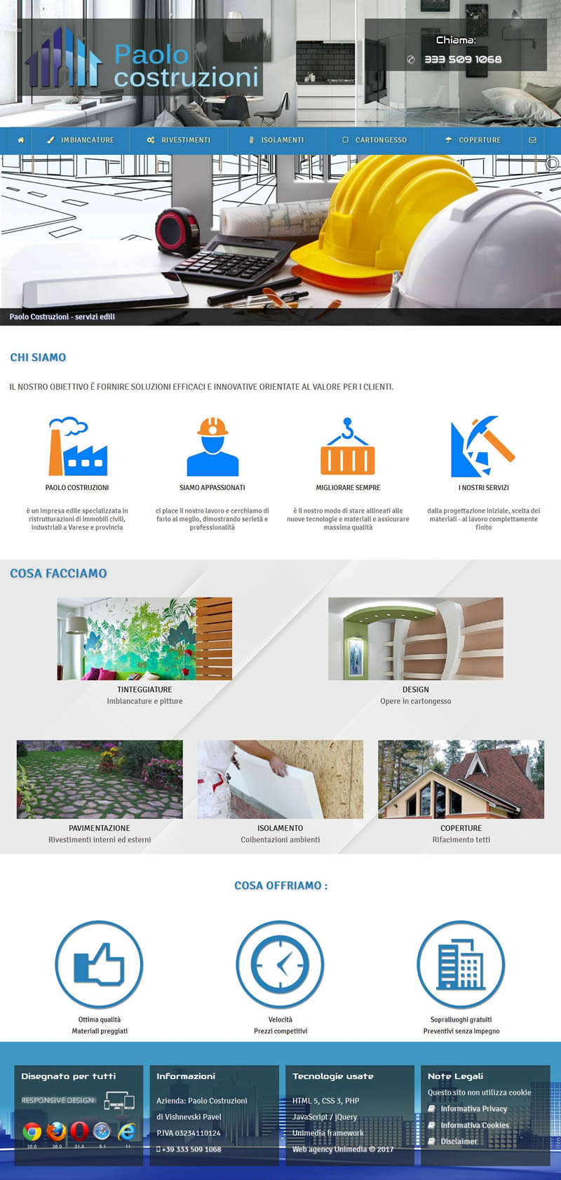Sito aziendale edilizia Responsive design, Tecnologie: HTML5, PHP, jQuery, JS, CSS3, Unimedia Framework
