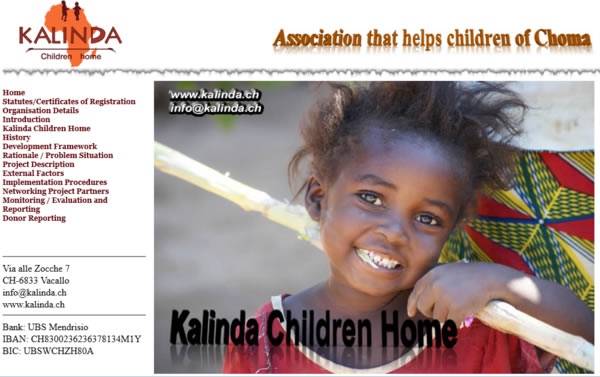 Sito di beneficienza per i bambini della Zambia